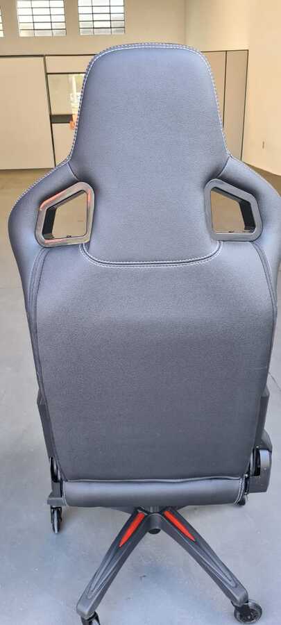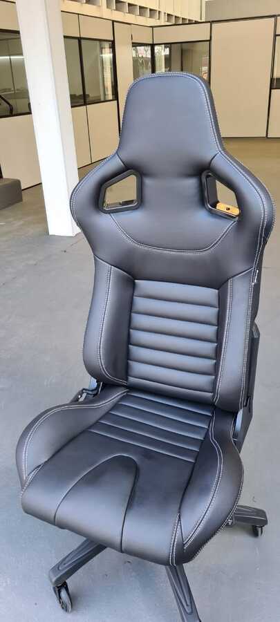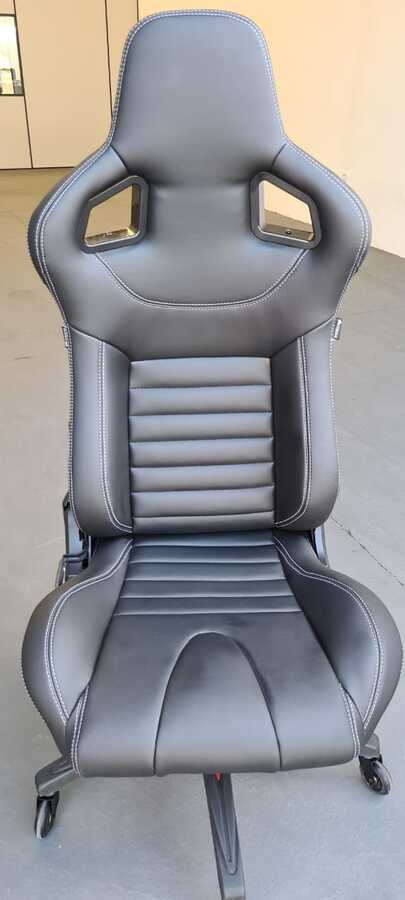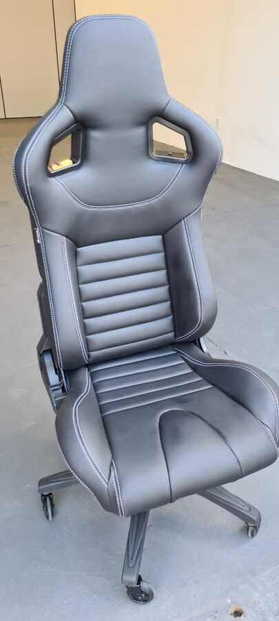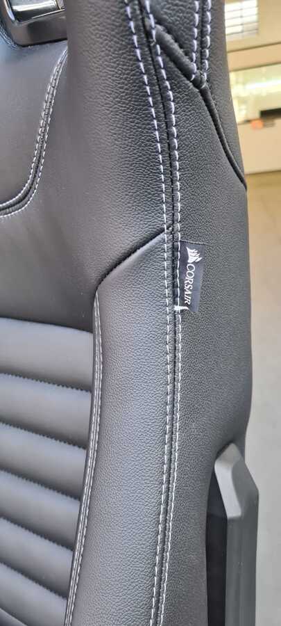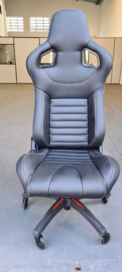 Revestimento preto liso, com detalhe em costura no centro e costura dupla em branco.